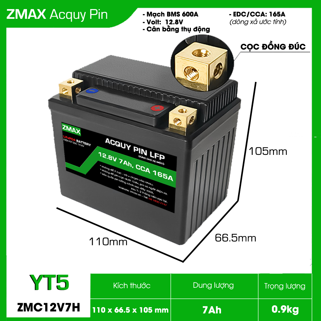 Trong xu hướng nâng cấp hiệu suất và độ bền cho xe máy, các dòng acquy Lithium ngày càng được ưa chuộng. Nổi bật trong phân khúc này, Bình Acquy Pin LFP (LiFePO4) 12V 7Ah – ZMC12V7H-YT5 mang đến hiệu năng mạnh mẽ, độ an toàn cao và tuổi thọ vượt trội so với acquy truyền thống.